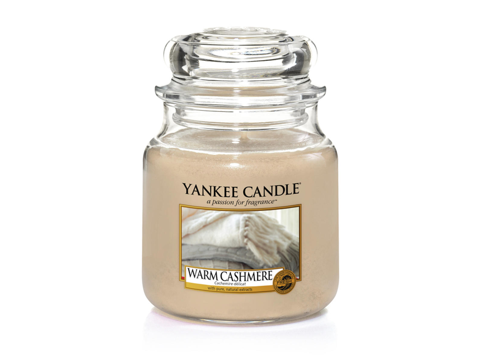 Duftlysene fra Yankee Candle Original kollektion er det mest populære duftlys fra Yankee Candle. Elsket for deres lange brændetid (op til 150 timer) og det klassiske Apotekerglas, som pynter i ethvert rum. Lysene er fantastiske til at give stil og klasse til den personlige indretning med lækre farver og skønne dufte. Yankee Candle Classic har skabt en kollektion af smukke, aromatiske duftlys, som frigiver en dejlig aroma, og skaber en hyggelig stemning i dit hjem. De er også populære gaver, som holder længe og kan personliggøres med en yndlingsduft. Når lyset er brændt, kan glasset genbruges til ny dekoration eller som almindelig opbevaring. Vælg fra vores store kollektion af dufte, enten blomsteraroma, frugtige, citrus, friske og rene, søde og krydrede eller træagtige dufte. Vælg efter sæson, eller se, hvad der er trendy, såsom fristende frisk lime og koriander eller ristede pekannødder. Ingredienserne er paraffinvoks, samt æteriske olier til duft og vægerne er produceret af bomuld. Warm Cashmere: Pak dig ind i luksus med overdådige noter af beroligende sandeltræ og eksotisk patchouli. Topnote: Solvarm orange Mellemnote: Cashmere Wood, gyldent rav, kardemomme Bundnote: Cremet sandeltræ, moskus, hvid patchouli, fransk vanilje Brændetid: Medium 65-75 timer. Vægt 411g. Vægt inkl. glas 830g.