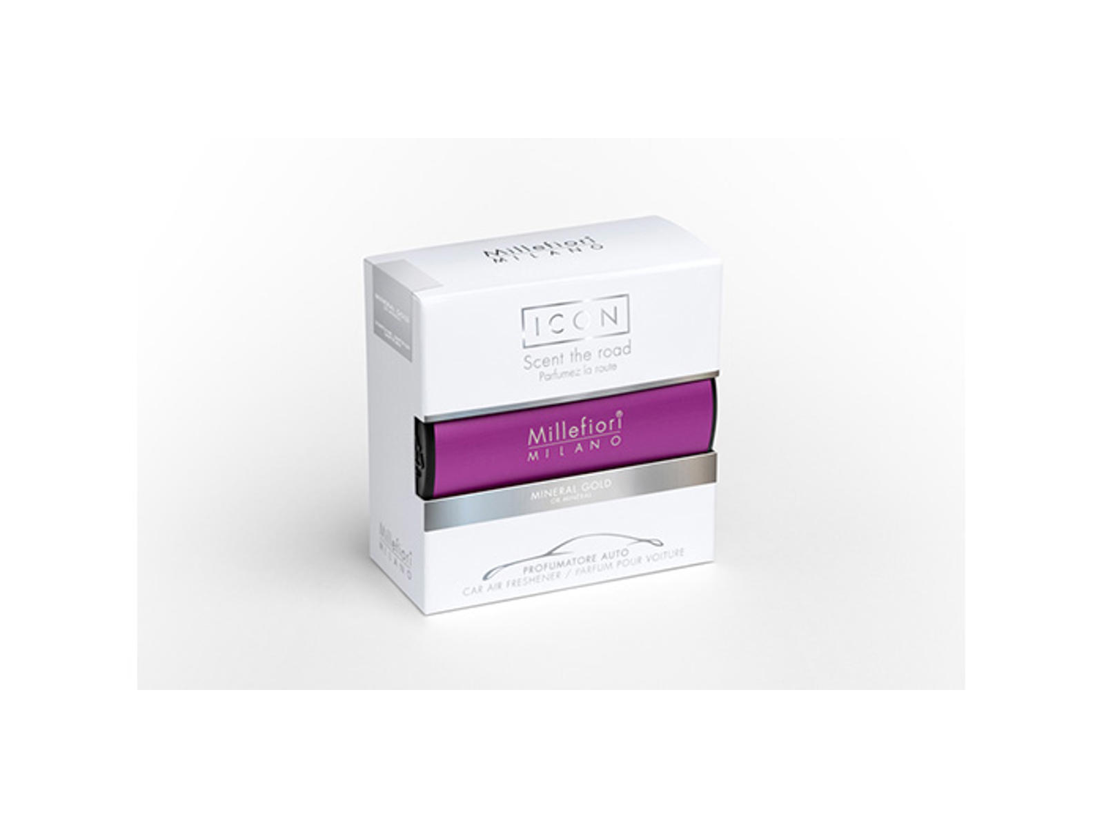 Millefiori Car Air Freshener er en stilfuld serie af luftfriskere til bilen i et unikt og stilfuldt design, der passer perfekt til enhver bilejer, der ønsker at holde bilen frisk og velduftende. Luftfriskeren har en justerbar klemme, der gør det nemt at fastgøre den til luftkanalerne i bilen. Duftmolekylerne frigives gradvist, mens luften strømmer igennem luftkanalerne, og vil give en frisk og behagelig duft i flere uger. Hver luftfrisker har et ydre dæksel i forskellige materialer afhængigt af modellen, og en duftende indvendig sektion. Luftfriskeren har en længde på 7 cm og en højde på 2,5 cm, hvilket gør den let at fastgøre på bilens ventilationsåbning. Produktet leveres i en flot gaveæske, og er derfor også en oplagt gave til enhver bilejer. Luftfriskeren er produceret af Millefiori, som er en anerkendt italiensk producent af luftfriskere til hjemmet og bilen. Mineral Gold: En harmonisk melodi, hvor en frisk og skarp topakkord inspireret af duftende ozon- og myntenoter møder et hjerte med blomsternuancer afsluttende i en varm basisakkord, der fremkalder de omsluttende duftnoter af rav og vanilje. Topnote: Aldehydnoter, myntenoter, ozoniske noter Mellemnote: Marinenoter, liljekonval, rose Bundnote: Cedertræ, vanilje, rav Vægt: 22g
