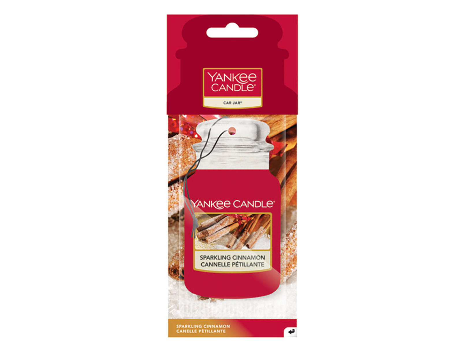 Yankee Candle Car Jar. Tag din foretrukne Yankee-duft med på farten! Brug Yankee Candle Car Jar Air Freshener til at fylde din bil, dit skab, din båd og andre små rum med en fantastisk Yankee-duft. Neutraliserer dårlige lugte og opfrisker ethvert rum med de dejligste dufte, som fås i et væld af duftnuancer. Skift dufte, så de passer til sæsonen, eller lad familien vælge deres favorit. Din bil bliver mere indbydende på få sekunder. Hver Car Jar er forsynet med snor og kan hænge fra bakspejlet. Udskiftes når duftstyrken ikke længere er mærkbar. Giver op til 4 ugers duft. Vægt: 10g Sparkling Cinnamon: Ferieglød - den krydrede varme duft af stangkanel med et strejf af nelliker. Topnote: Kanelkrydderi Mellemnote: Nelliker, kardemomme Bundnote: Laurbærblad, cedertræ