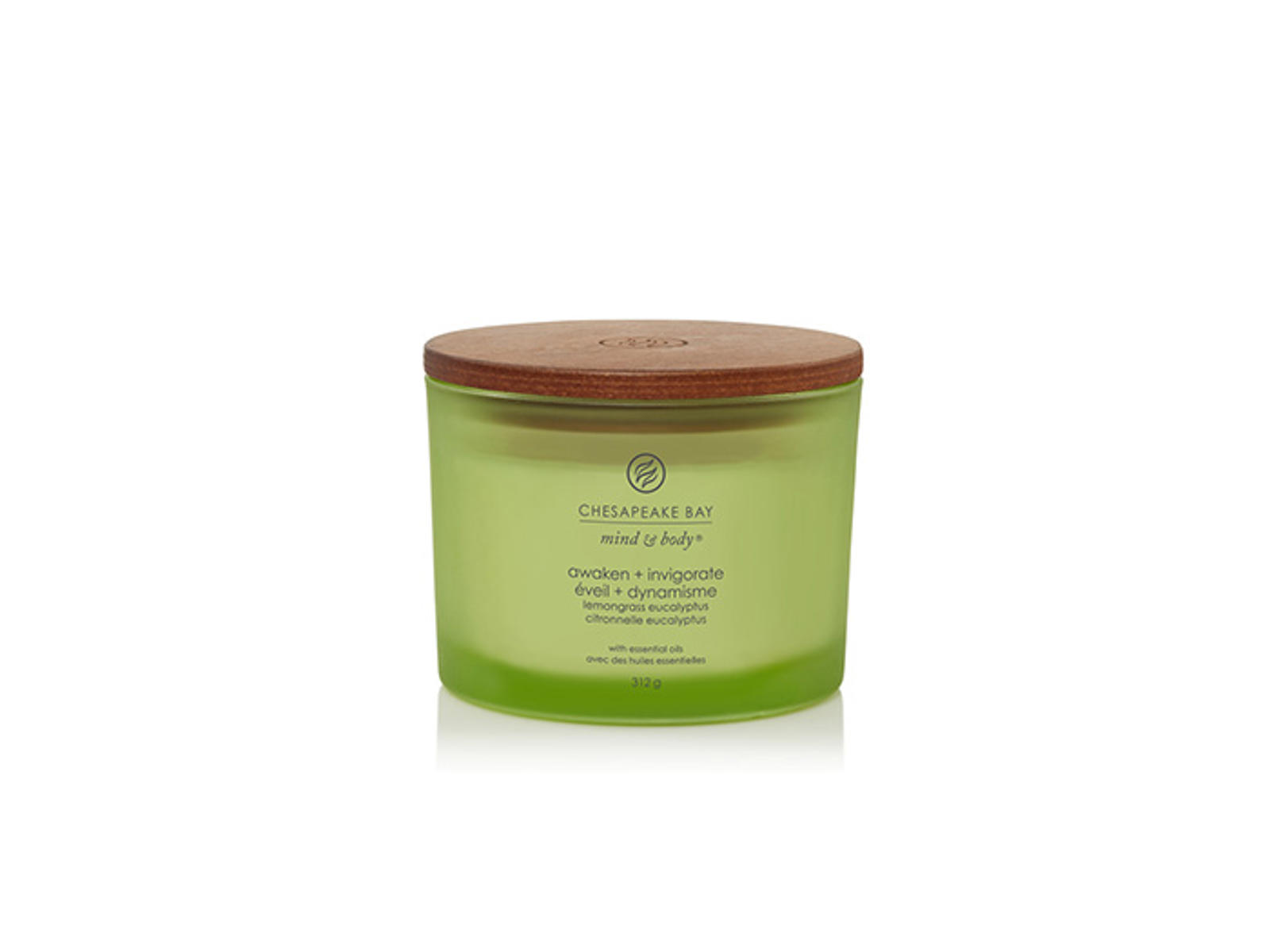 Chesapeake Bay Candle - Awaken & Invigorate (3 Wick): Opløftende duft af citrongræs, verbena og eukalyptus. Sojavoks, tre bomuldsvæger og 28 timers brændetid. Skab energi og friskhed i dit hjem.