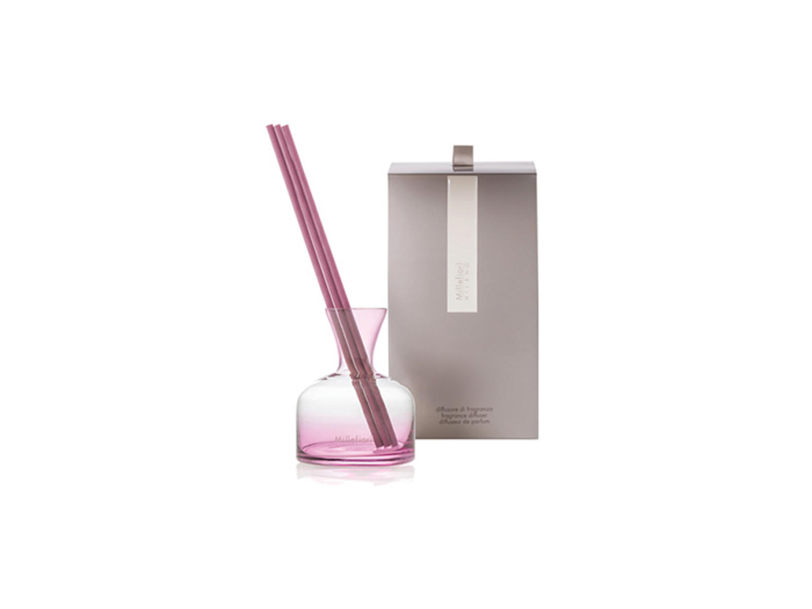 Millefiori Vase Fragrance Diffuser Pink Glass er en stilfuld og elegant diffuser fra italienske Millefiori, der fungerer som både en smuk dekoration og en rumdiffuser. Diffuseren er designet i form som en vase, og er fremstillet af glas i en smuk lyserød farve, der passer til enhver moderne indretningsstil. Diffuseren er nem at bruge, du skal blot fylde vasen med den ønskede duftende olie, og sætte de medfølgende diffuserpinde i vasen. Pindene absorberer olien og spreder duften i rummet, og du kan justere intensiteten af duften ved at tilføje eller fjerne pindene. Alle refills fra Millefiori serien kan anvendes til denne diffuser. Millefiori Vase Fragrance Diffuser Glass er tilgængelig i 3 forskellige varianter. Den elegante vaseform og den smukke lyserøde farve giver et unikt og stilfuldt touch til ethvert rum. Leveres uden duft. Refill produkt med duft skal tilkøbes.
