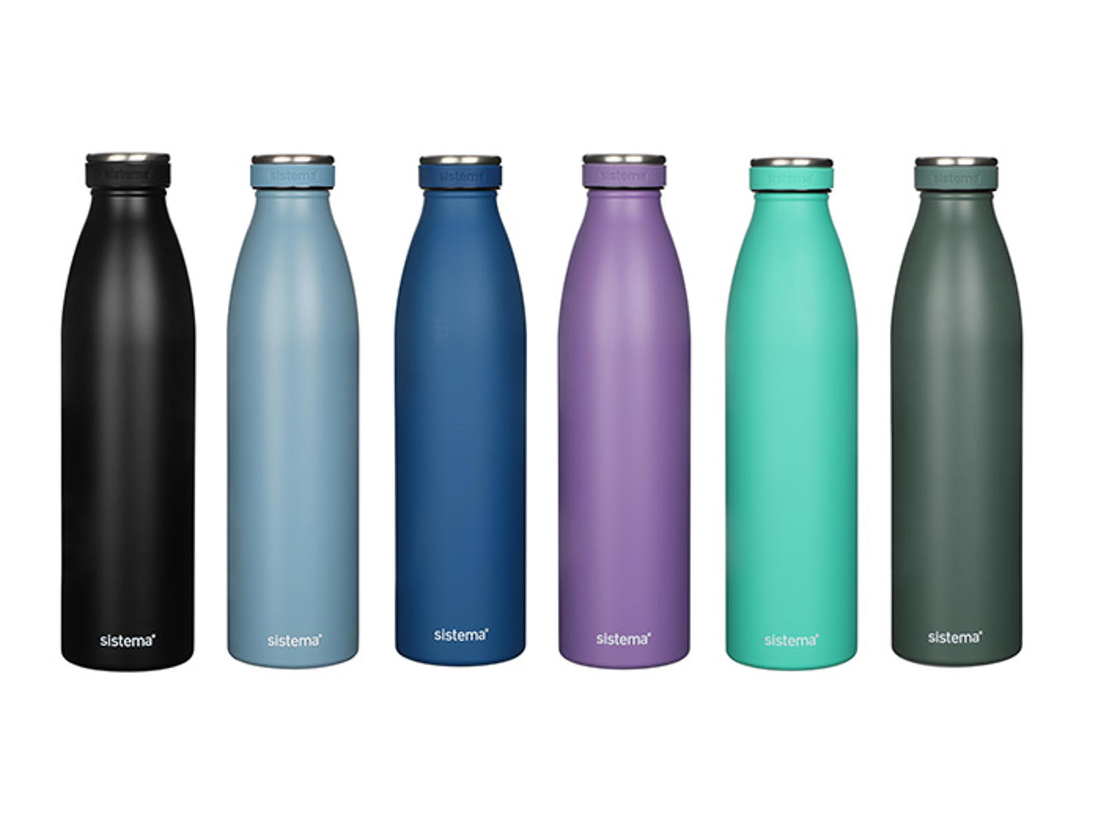 Fås i de flotte farver: Ocean Blue, Minty Teal, Misty Purple, Coast Blue, Nordic Green og Black. Termoflasken holder væsken kølig i op til 12 timer og varm i op til 6 timer.