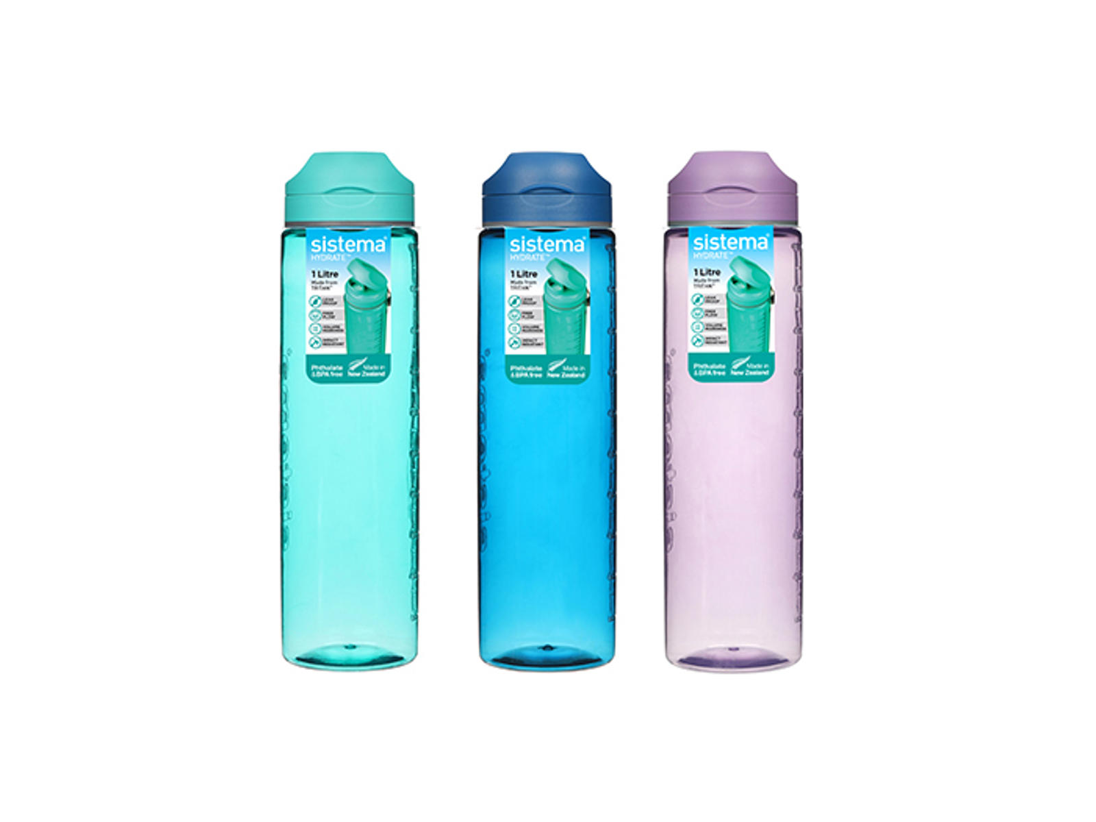 Tritan Flip Top drikkeflaske fra sistema med måleenhed på siden. Den store, praktiske Flip Top sikrer, at du får drukket godt med væske i løbet af dagen. En hel liter rummer denne flotte drikkeflaske, og så er der måleangivelse på siden og en nem og praktisk lukning med behagelig stor munding at drikke af. Endvidere har flasken en praktisk hank i grå silikone fastgjort i låget, som gør det nemt at bære flasken.