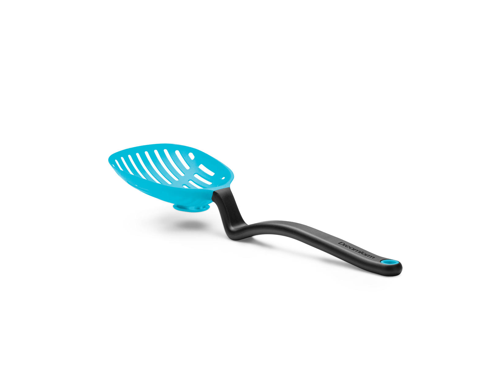 • Lestrain fra Dreamfarm er en drypfri hulske, med et unikt integreret depot, der fanger og opsamler dryp. Lestrain er designet med et knæk på håndtaget, som gør, at den ikke kommer i kontakt med underlaget. Fine slidser i skeen gør Lestrain ideel til alle slags opgaver ved komfuret, lige fra stegning af dumplings til at si ærter, majs og pasta. Et stort og fleksibelt hoved er perfekt til at øse fra bunden af gryder eller pander og servere direkte. Fås i mange skønne farver i to størrelser: 28,8 cm eller Big: 32,6 cm. Materiale er nylon. BPA-fri. Tåler opvaskemaskine.