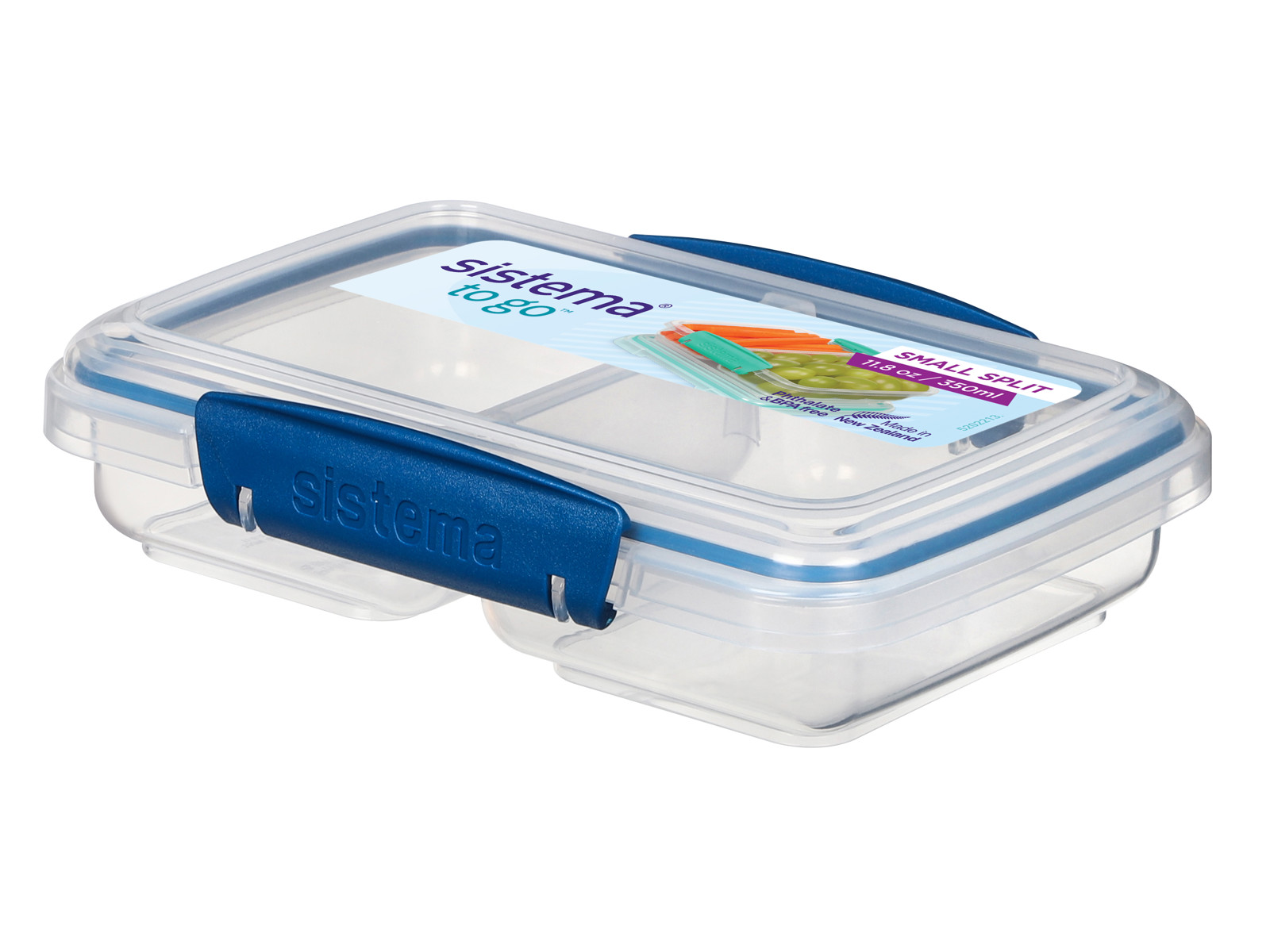 • Small Split To Go fra sistema er en smart lille opdelt madkasse med to rum. Perfekt som ekstra tilbehør til madpakken eller til formiddags- eller eftermiddagssnack. Til gulerodsstave og vindruer, skåret frugt og ostestave, eller en lille rugbrødsmad - der er masser af muligheder for anvendelse af denne smarte Small Split. De to rum holder ingredienserne adskilt, indtil de skal spises. Perfekt til at tage med på arbejde, i skole eller på tur.