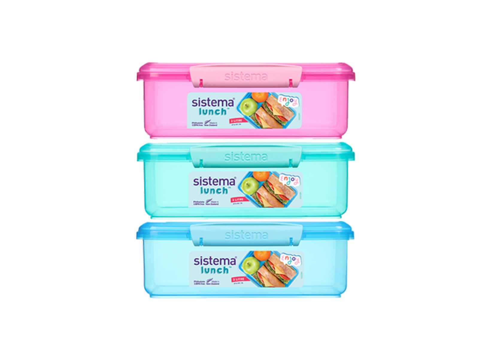 2L Lunch fra sistema er en større og alsidig opbevaringsboks, som også kan anvendes til madkasse. Der er ingen rumindeling, men der er god plads til flere slags sandwich, landgangsbrød, rugbrødsmadder, frugt og grønt mv.