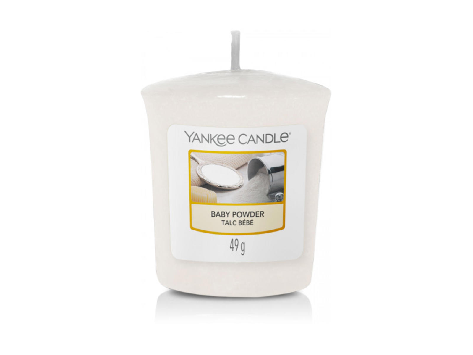 Votive Candle stearinlys er perfekte små lys til lysestager, fyrfadsstager eller dekorationer. Et skønt duftlys med masser af saftige noter, som giver en dejlig afslappende atmosfære i rummet. Votive Candle har en selvslukkende funktion, så når al voksen er væk, slukker flammen af sig selv. Forkæl dig selv eller en du har kær med dette skønne duftlys, som findes i flere duftvarianter. Produceret af førsteklasses paraffinvoks, der sikrer en ren og ensartet forbrænding. Vægen er 100% naturfibre. Mål: 4,6cm x 4,8cm Baby Powder: En beroligende, frisk duft, der blidt renser sjælen, og giver den et blødt strejf af uskyld. Topnote: Mandelaroma Mellemnote: Blomsteraroma Bundnote: Moskus, nyslået hø Brændetid: Op til 15 timer. Vægt 49g.