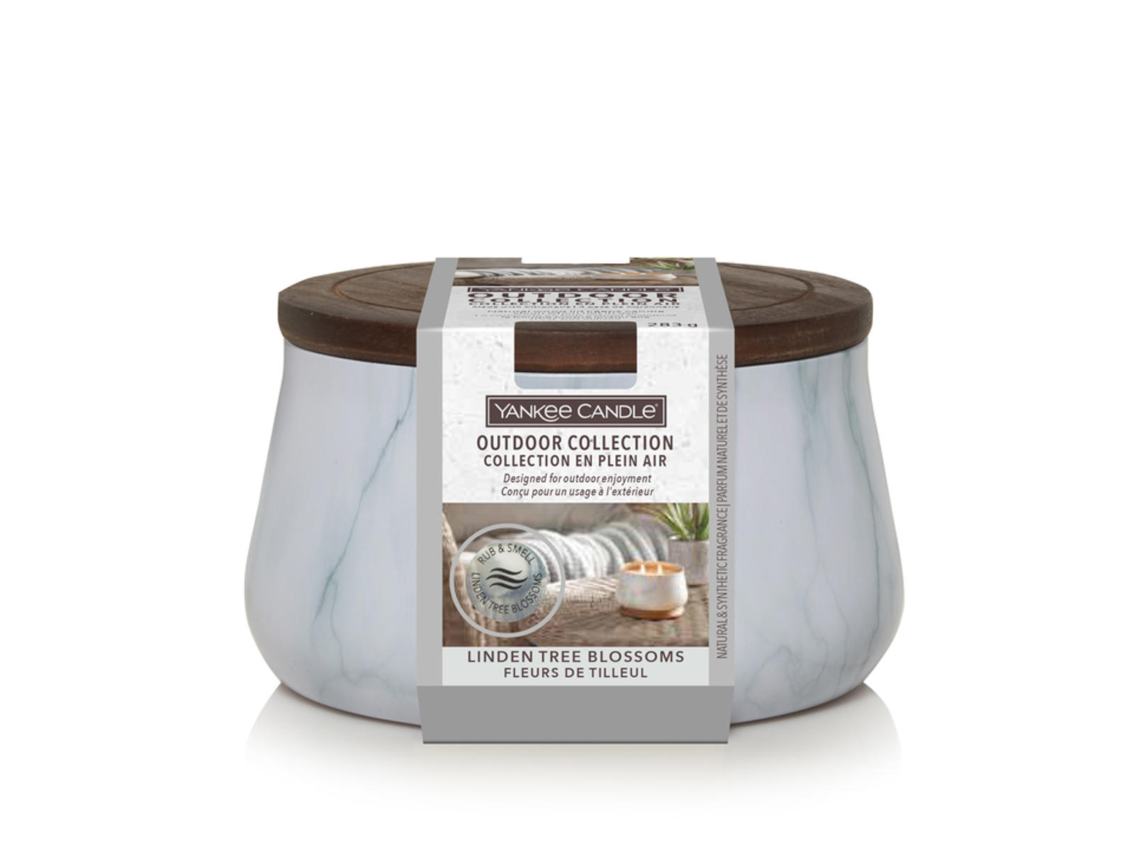 Havelys skaber udendørs atmosfære! Outdoor Collection fra Yankee Candle er en ny måde at nyde kvaliteten og de naturtro dufte udenfor! Duftlys får et nyt formål, når vejret kalder på udendørsliv. En uventet glød og en dejlig, velkendt duft i luften skaber en atmosfære, der forvandler aftenen. Udendørs stearinlys blev skabt specielt til haven, verandaen og terrassen for at give belysning og duft, der hygger om dine udendørs aktiviteter. Med dufte designet af Yankee Candle-eksperter og kombineret med citronella og andre æteriske olier, er Outdoor Candle Collection specielt skabt til optimal ydeevne udendørs. Det er afbalancerede og naturtro dufte til udendørs brug, der gør enhver sommeraften til noget mindeværdigt. Udendørs stearinlys er fremstillet af en unik voks med et højere smeltepunkt, designet specielt til udendørs nydelse. Lyset er anbragt i et dekorativt blikkar med et naturligt trælåg, designet til at modstå udendørs elementer, og som holder voksen beskyttet, når lyset ikke er i brug, og de to store væger garanterer god oplysning. Linden Tree Blossoms: Noter kombinerer og bringer dufte af frodig åkande, luftig blåregn, lindeblomst og citronella til dine udendørs sammenkomster. Topnote: Hosta-blade, lindeblomst, citron Mellemnote: Wisteria, åkande, geranium Bundnote: Moskus, cedertræ Brændetid: Op til 24 timer. Vægt: 283g. Vægt inkl. emballage: 430g.