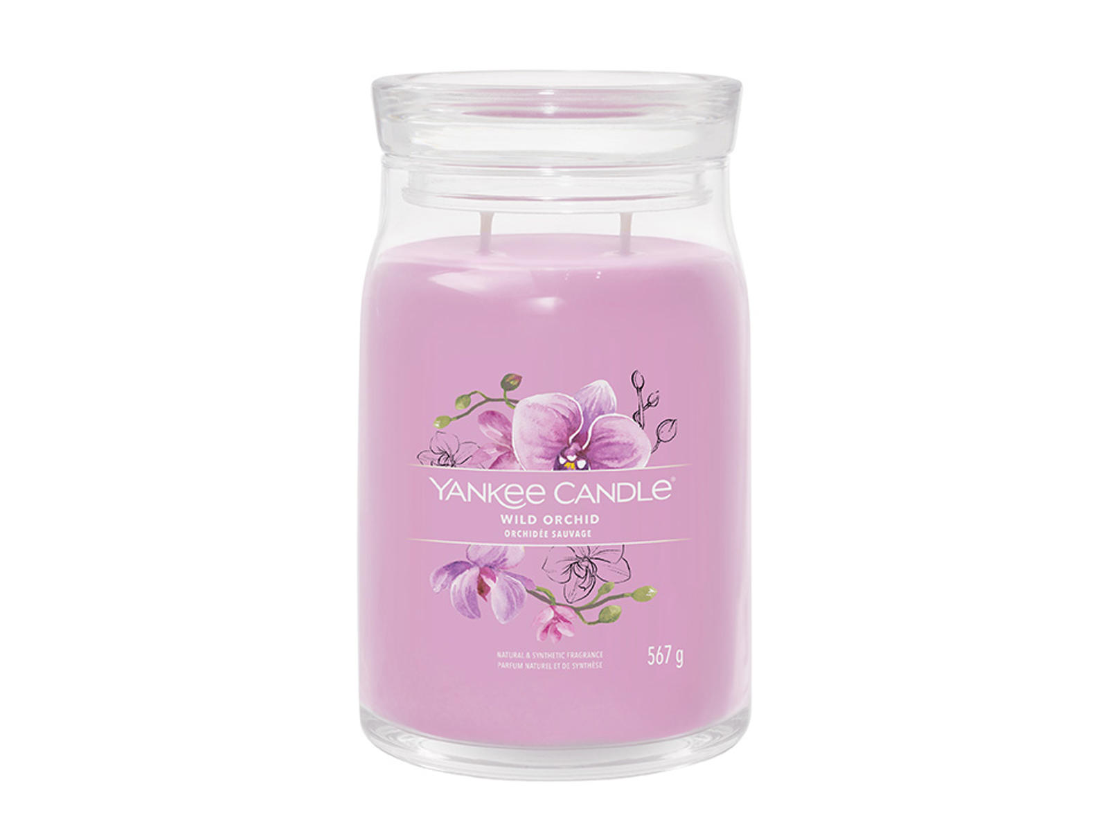 Duftlysene fra Yankee Candle Signature Collection er fuldstændig nytænkt. Den forfriskende version af det ikoniske Apotekerglas er designet til at skabe den bedste oplevelse. To bomuldsvæger og en premium sojavoksblanding er, sammen med de smukke håndillustrerede etiketter og livlige voksfarver, perfekt matchet med de eksklusive dufte. Lysene er elsket for deres lange brændetid, og er sublime til at give stil og klasse til den personlige indretning med lækre farver og skønne dufte. Signature Collection har skabt en kollektion af smukke, aromatiske duftlys, som frigiver en dejlig aroma og vil glæde dine sanser og oplive dit hjem. Duftlysene er også populære gaver, som holder længe og kan personliggøres med en yndlingsduft. Når lyset er brændt ud, kan glasset genbruges til ny dekoration eller som almindelig opbevaring. Find selv din yndlingsduft blandt de mange muligheder i duftspektret, der opfrisker, beroliger og fængsler. Nyd dine favoritter både indendørs og udendørs - de er også perfekte til terrassen på en varm sommeraften. Wild Orchid: Flygt til et frodigt tropisk paradis, der er lige dele berusende blomster og sød, moden frugt. Topnote: Solrig ozon, mandarinblomst, Bergamot, palmeblad Mellemnote: Vild orkidé, Hibiscus, jordbærnektar, midnatsjasmin, bananblomst Bundnote: Frugtagtig moskus, sandeltræ, hvidt rav Brændetid: Large 60-90 timer. Vægt 567g. Vægt inkl. glas 1.020g