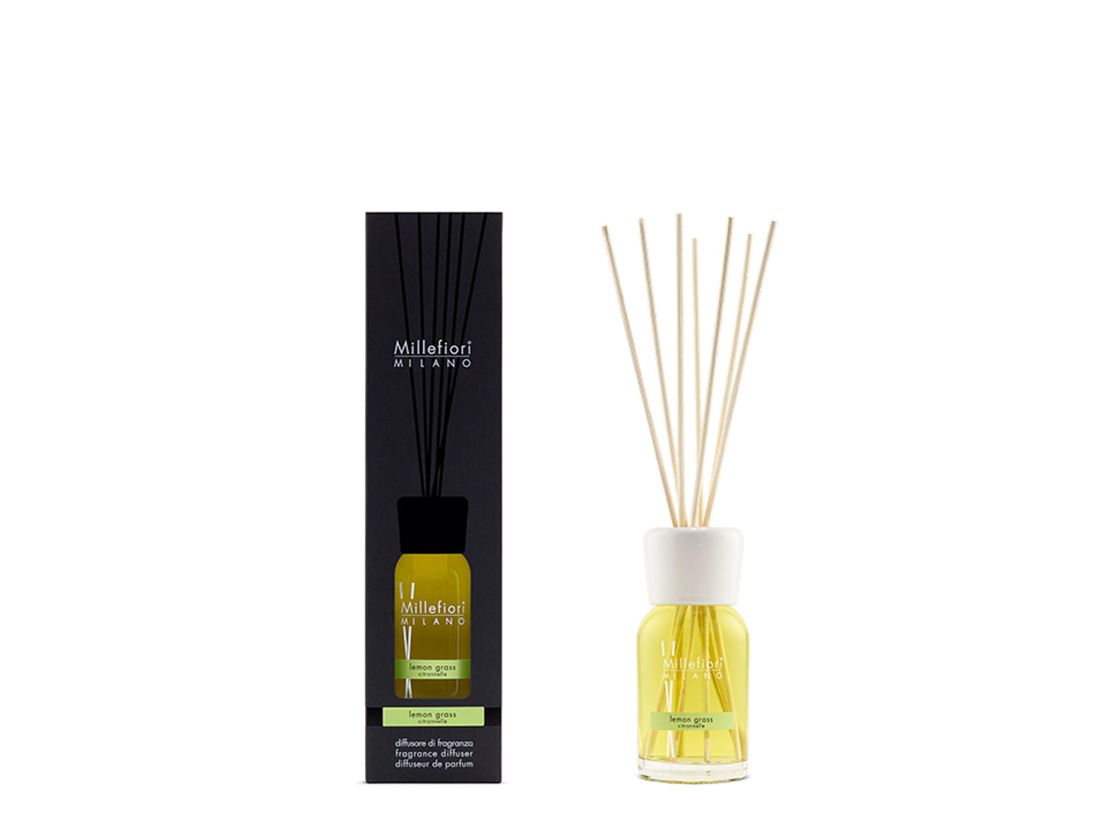 Millefiori Stick Diffuser 250ml Lemon Grass er en aromaterapiprodukt, der er designet til at sprede en frisk og citrusagtig duft i dit hjem eller kontor.