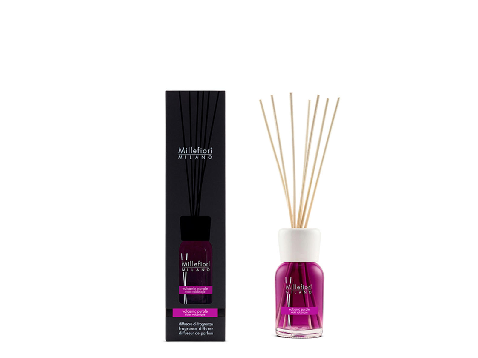 Millefiori Stick Diffuser 100 ml Volcanic Purple er en aromaterapiprodukt, der er designet til at sprede en intens og sensuel duft i dit hjem eller kontor.