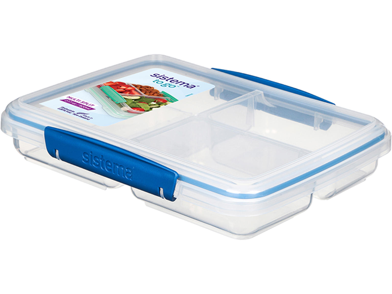 Multi Split To Go fra sistema er perfekt til rester efter aftensmaden, til snacks til skovturen og meget andet. De smarte, rektangulære beholdere sikrer den mest effektive udnyttelse af pladsen i dit køleskab, fryser og køkkenskuffe. Sistemas® patenterede nemme låseclips og fleksible forsegling sikrer, at maden forbliver frisk i længere tid. Multi Split giver dig mulighed for at opbevare tre forskellige slags indhold i én beholder, nemt og overskueligt. Ideel til opbevaring af mos, grød osv. Eller til agurkestænger, tomater og vindruer til frokosten.