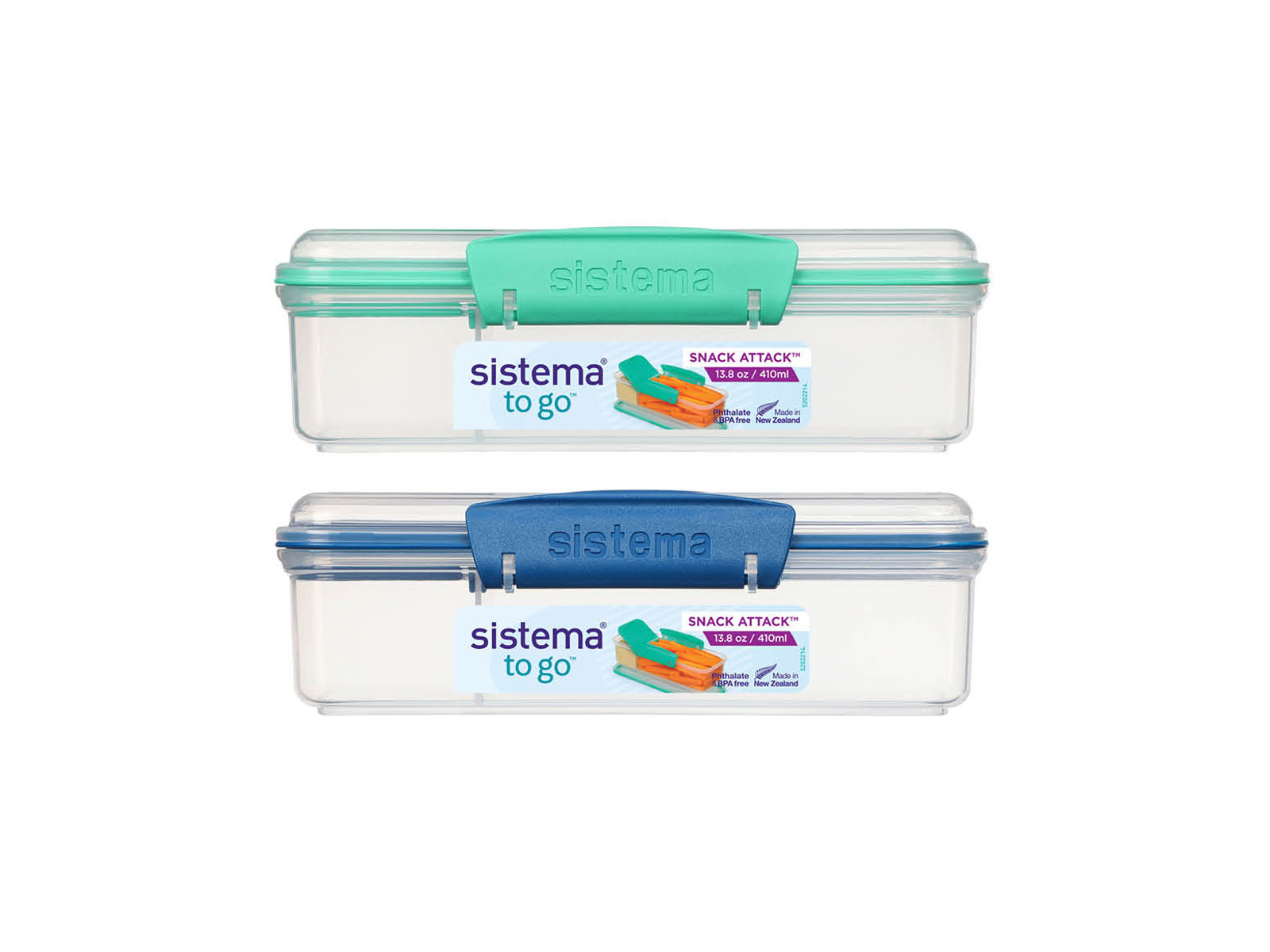 Snack Attack To Go på 410ml fra sistema indeholder et stort rum samt et mindre rum med særskilt låg.