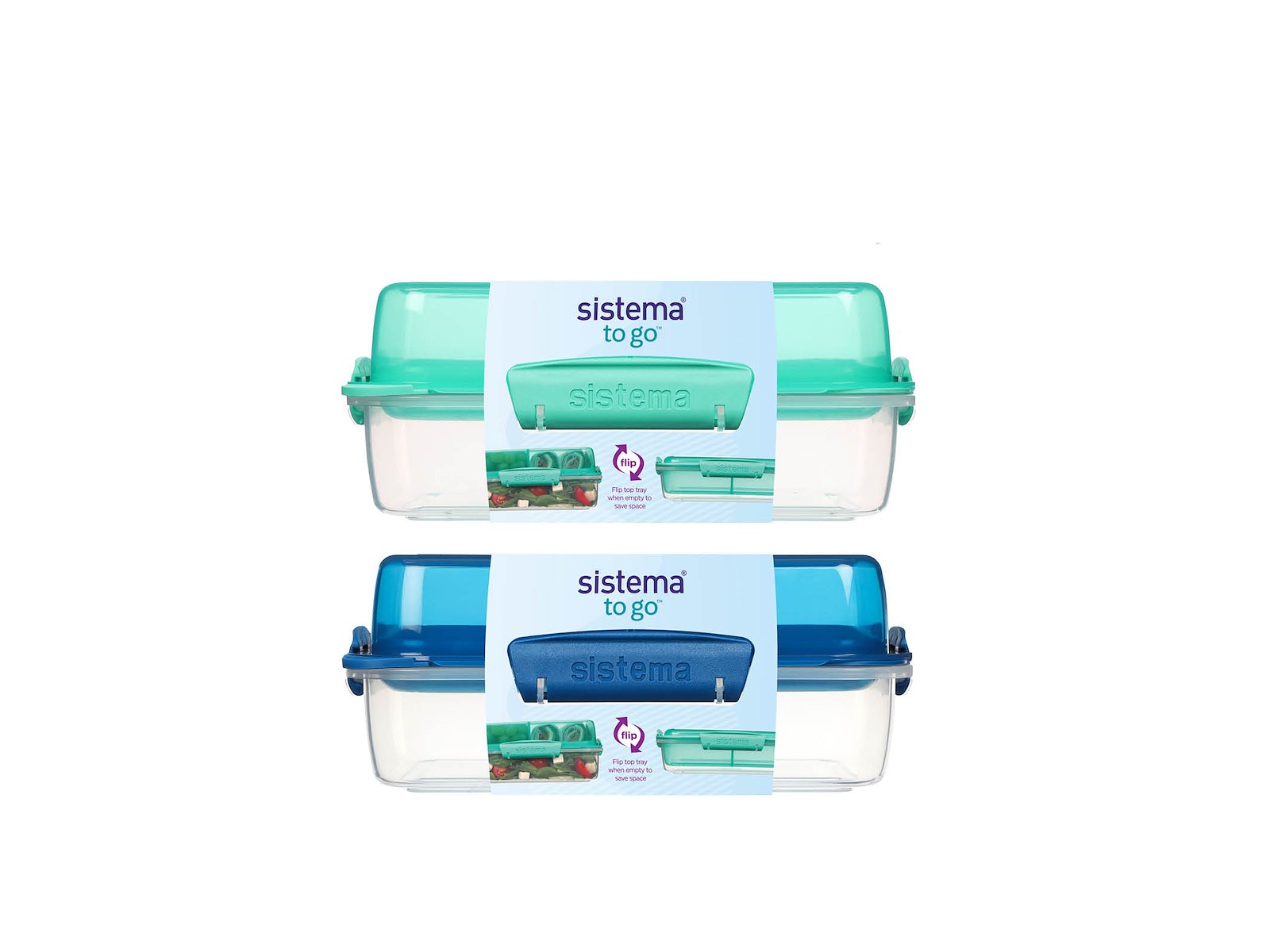 Lunch Stack Rectangle fra sistema er en smart rumopdelt madkasse, som kan pakkes sammen efter brug.