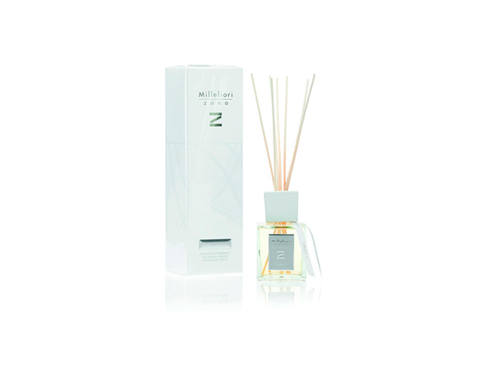 Millefiori Zona Stick Diffuser er en elegant og velduftende diffuser, der skaber en diskret og varm atmosfære i dit hjem eller på kontoret. Diffuseren leveres med en flot glasflaske på 250 ml, som er fyldt med en eksklusiv blanding af æteriske olier og parfume, der vil sprede sig i rummet gennem de medfølgende diffuserpinde.