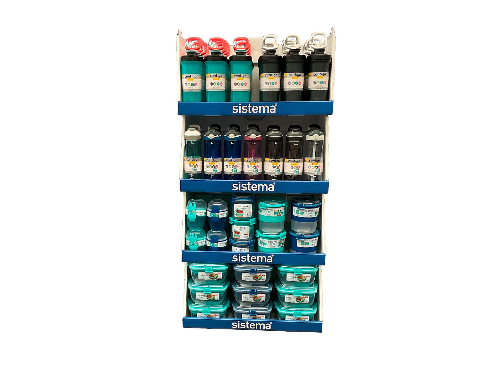 This sales-ready display is an obvious opportunity to increase sales with a mix of popular and functional products from Sistema and Contigo. Ready for delivery and easy to implement in the store.