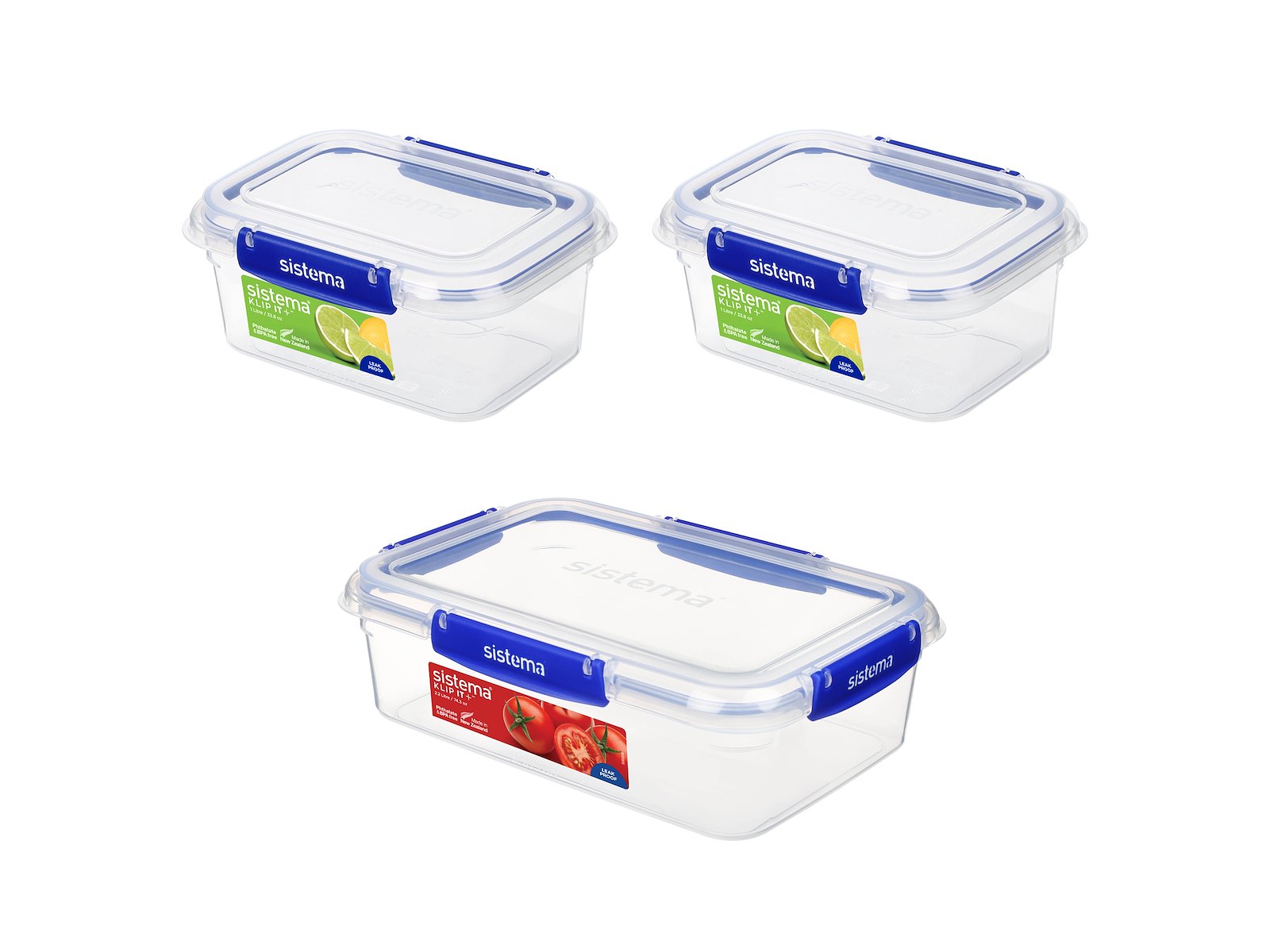 This combo pack from Sistema contains 3 containers from the KlipIt Plus series