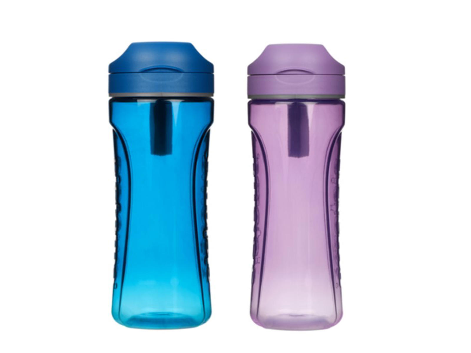 Available in attractive colors: Ocean Blue and Misty Purple. Dishwasher and freezer safe.