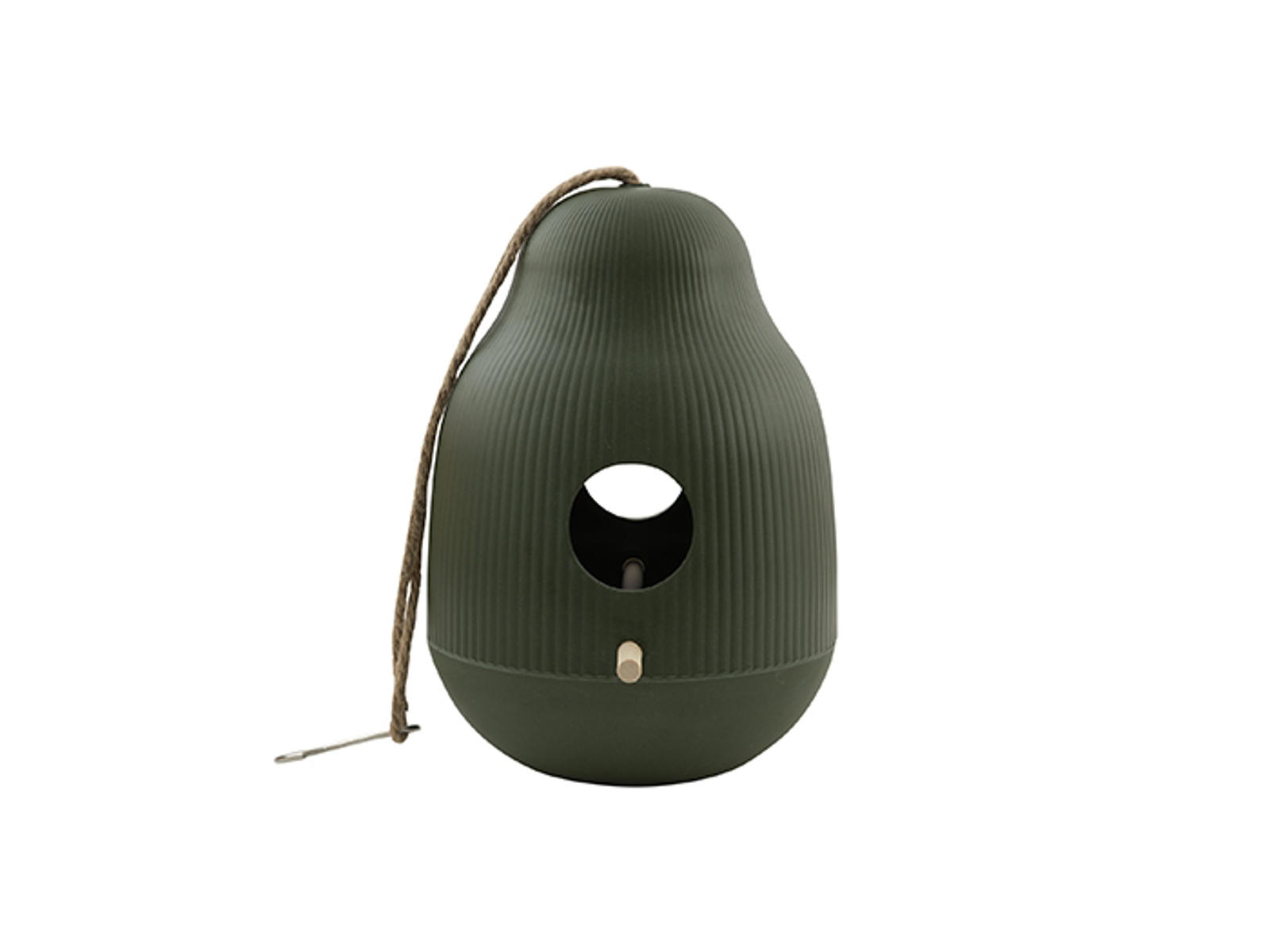Description: This beautiful birdhouse is a combination of form and function that adds both a colorful and natural aesthetic to your garden or outdoor space. Made from sustainable bamboo fiber and designed in a classic shape, it's an ideal oasis for wild birds in your garden.