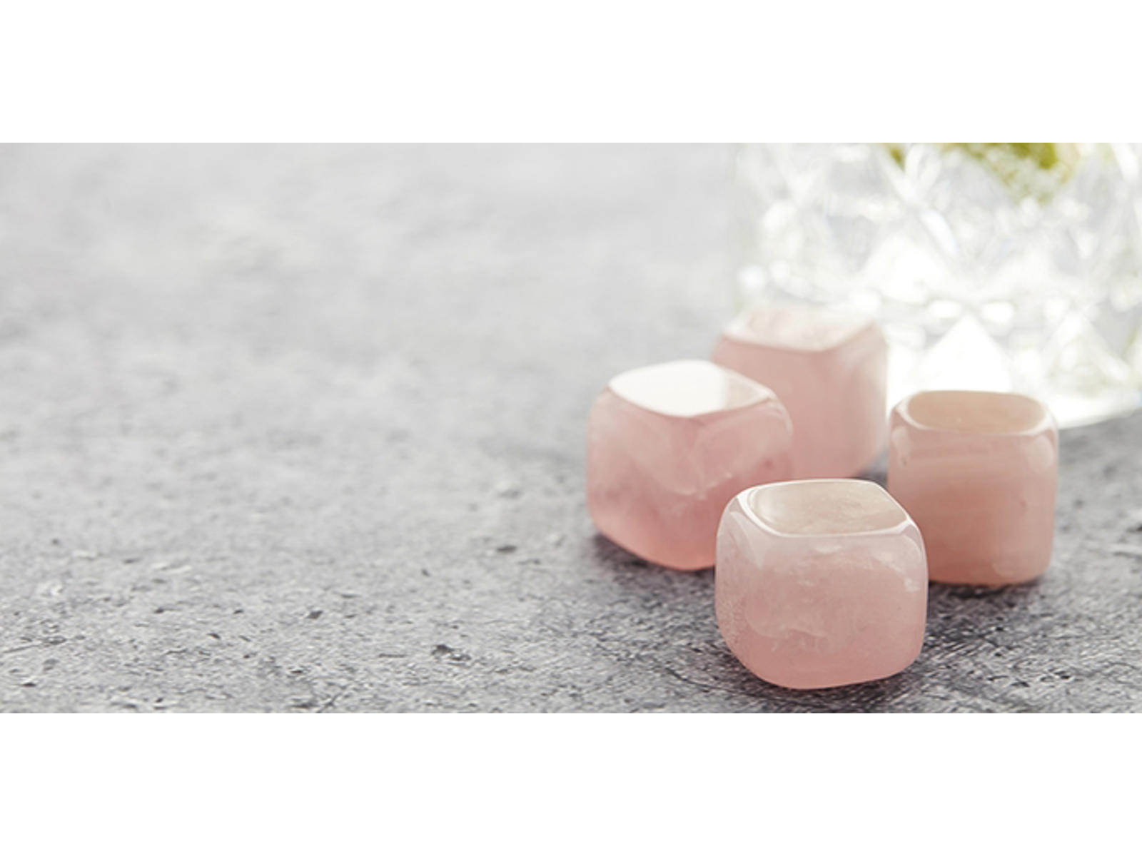 - The ice cubes are made from pink jade that can be reused over and over again without losing their cooling ability or flavour.