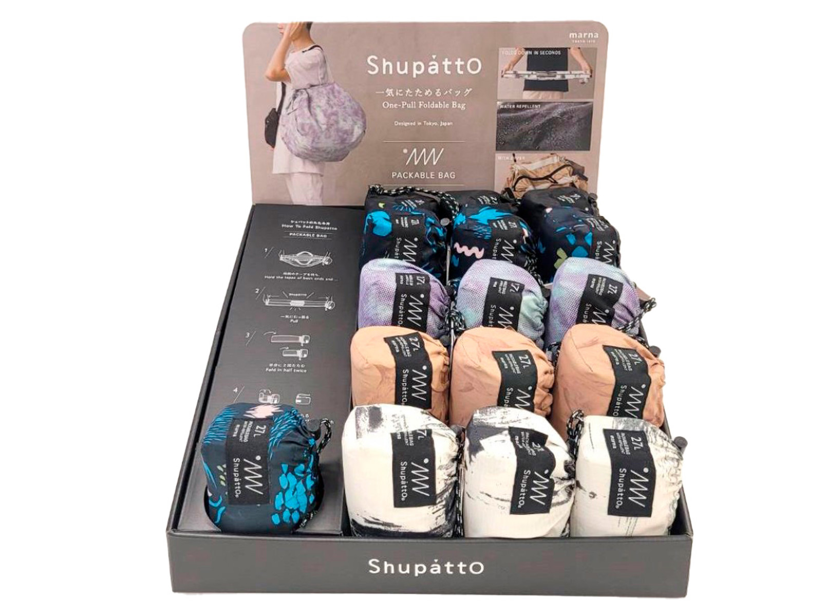 Let your customers experience the advantages of Shupatto - they can easily fold a bag out and in, which shows how practical and simple it is to use.