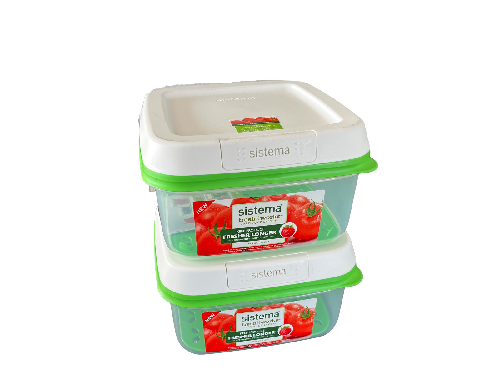 With Sistema Fresh Works you achieve better storage of your fruit and vegetables. The new and revolutionary Fresh-vent technology creates an optimal environment for fruit and vegetables by regulating the flow of oxygen and carbon dioxide in and out of the container. The tray at the bottom of the bin raises the contents away from moisture, ensuring better airflow and slowing down decomposition. The built-in filter in the lid never needs replacing.